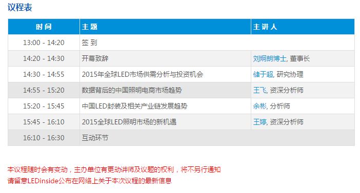 問題來了,2015年LED照明的景氣度是否還會持續?2015年全球LED市場的走勢如何?全球市場研究機構TrendForce旗下綠能事業處LEDinside聯手中國LED網將于2015年1月9日在深圳馬可孛羅好日子酒店悉尼廳舉辦LED產業行情分析會,從2015年全球LED市場趨勢、LED照明市場趨勢、中國照明電商市場、LED封裝市場等議題進行全方位分析,為您指點迷津。